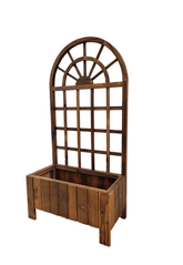 Introducing the Arch Wooden Planter, a versatile and elegant addition to your gardening décor. This planter features a horizontal wooden box, perfect for housing a variety of plants, including hanging, climbing, or floral arrangements. The back support showcases an arch-shaped trellis, providing an ideal structure for climbing plants to flourish. Designed for flexibility, it can be mounted on a wall to save space or used as a freestanding unit to enhance any area of your home or garden.
