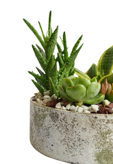 Its natural weathered finish gives the Circular Moss Green Planter a unique, aged character that adds depth and warmth to any setting. With its simple, rounded design, this planter serves as a versatile piece, suitable for showcasing a variety of plants or creating a serene, minimalist display. The rough texture and earthy tones of the stone create a beautiful contrast against vibrant greens, making it an eye-catching addition to your decor.