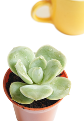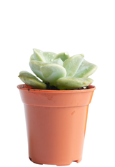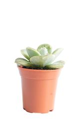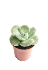 The Echeveria laui is a stunning and delicate succulent prized for its perfectly symmetrical rosette of thick, powdery blue-gray leaves. Native to Mexico, this slow-growing plant often develops a soft pink blush on its leaves when exposed to bright sunlight. Its unique, powdery coating (farina) not only enhances its visual appeal but also helps protect it from intense sunlight and moisture loss. During the blooming season, it produces tall stems with small, coral-colored flowers, making it a showstopper in any succulent collection or arrangement.