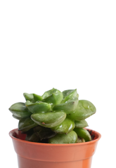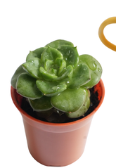 The Echeveria ‘Rolly’ is a stunning succulent characterized by its compact rosette shape and thick, fleshy, rounded leaves. The leaves are a vibrant green with subtle pinkish hues along the edges, which become more pronounced under bright sunlight or cooler temperatures. Its small, neat growth habit makes it a favorite for tabletop displays, terrariums, or mixed succulent arrangements. During the blooming season, it produces delicate, bell-shaped flowers that enhance its charm.