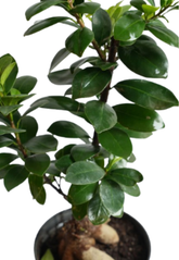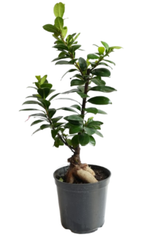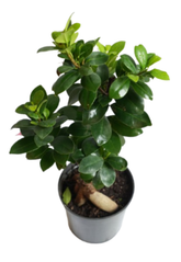 The Ficus Ginseng Bonsai is a popular ornamental plant known for its thick, gnarled roots that resemble a miniature tree trunk, topped with glossy, oval-shaped green leaves. This bonsai is admired for its unique and artistic appearance, making it a striking addition to any home or office decor. Compact and low-maintenance, it’s perfect for both beginners and experienced plant enthusiasts.