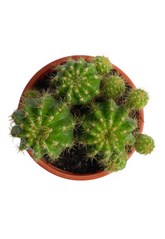 The Lemon Barrel Cactus is a striking, globe-shaped succulent with ribbed, bright green bodies covered in golden-yellow spines, resembling a glowing lemon. Native to arid regions, this slow-growing cactus is both ornamental and low-maintenance, making it ideal for indoor and outdoor succulent gardens. Over time, it can grow into a larger barrel shape, becoming a centerpiece in any cactus collection. During its blooming season, it may produce small, yellow flowers on its crown, adding to its charm.
