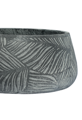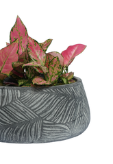 Introducing the Timeless Low-Lying Leaf Maple Planter, a sophisticated addition to your botanical collection. This round, low-profile planter is meticulously crafted from glass reinforced cement (GRC), offering the aesthetic appeal of dark grey concrete with enhanced durability.