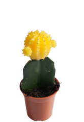 The Grafted Moon Cactus is a stunning ornamental plant known for its vibrant, colorful top that sits atop a contrasting green base cactus. The top, often in shades of red, pink, orange, or yellow, lacks chlorophyll and relies on the green base for nutrients. Compact and eye-catching, this cactus is perfect for tabletops, shelves, or succulent arrangements. Its unique appearance and low-maintenance nature make it a favorite for beginners and collectors alike.