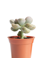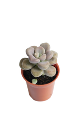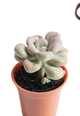 The Pachyphytum oviferum, commonly known as the Moonstone Succulent, is a charming and compact succulent prized for its chubby, egg-shaped leaves. These fleshy leaves are pale blue-green with a powdery, frosted coating, giving them a soft, pastel-like appearance. When exposed to bright sunlight, the leaves may develop pink or lavender undertones. This slow-growing succulent is perfect for small containers, rock gardens, or as a decorative tabletop accent.