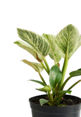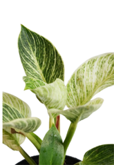 The Philodendron Birkin is a stunning tropical plant admired for its dark green, glossy leaves adorned with unique white pinstripe variegation.