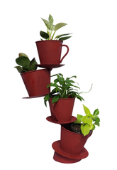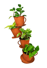 Create a unique display of your favourite plants in this Rustic Four Cup and Saucer Planter. It's Perfect for showcasing small plants, creepers or vines in your garden or outdoor space.