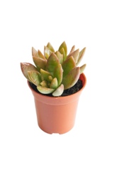 The Sedum adolphii is a striking succulent known for its fleshy, oblong leaves that form compact, rosette-like clusters. Its leaves are bright green with golden-yellow tips that turn orange or red when exposed to bright sunlight, giving it a sun-kissed glow. This low-growing succulent is perfect for container gardens, rock gardens, or as a cascading feature in hanging planters. It produces small, star-shaped white flowers during the blooming season, adding to its charm.