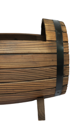 Crafted from authentic wooden barrels, the Horizontal Barrel Planter is designed to enhance your garden, patio, or balcony. Positioned horizontally and thoughtfully cut open at the top, it provides ample space for a variety of plants, from vibrant flowers to fresh herbs. The accompanying sturdy wooden stand elevates the planter, ensuring optimal drainage and ease of access.