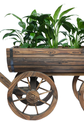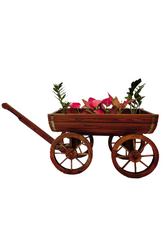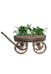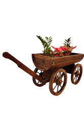 Bring rustic charm to your home or garden with our Wooden half-barrel planter, a durable wooden half-barrel with a classic trolley design and smooth-rolling wheels for effortless style and functionality.