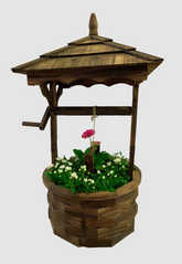 The Wooden Well planter adds a earthy, charming touch reminiscent of countryside wells. Its wooden structure makes it a standout piece, perfect for vintage decor style.