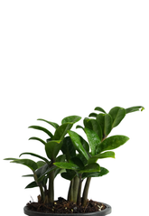 The Zamioculcas zamiifolia ‘Zenzi’ is a compact and more petite cultivar of the popular ZZ Plant. It features thick, waxy, dark green leaves that grow in a unique rosette pattern, giving it a dense and elegant appearance. This dwarf variety is perfect for small spaces, desktops, or as part of a mixed plant arrangement. Like its larger counterpart, ‘Zenzi’ is known for its hardiness and low-maintenance nature, making it an ideal choice for both novice and experienced plant enthusiasts.